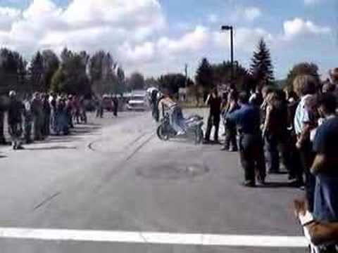 Mostra pra gente como que faz uma linda apresentação. Um fica dando zerinho e o outro empina a moto com um companheiro no guidão...